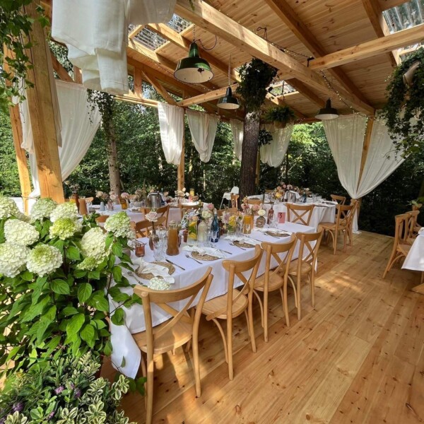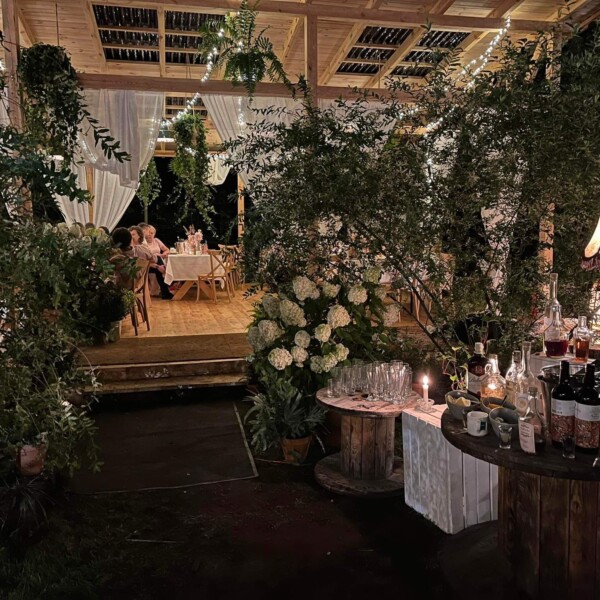 Oferujemy wyjątkową przestrzeń na kameralne przyjęcia w naszej pięknej Szklarni, mieszczącej do 40 osób. To idealne miejsce na wesela, chrzciny, urodziny czy wieczory panieńskie i kawalerskie. Nasza Szklarnia to przeszklona konstrukcja, która w naturalny sposób łączy wnętrze z otaczającą przyrodą, tworząc magiczną atmosferę niezależnie od pory dnia czy roku. Wnętrze Szklarni jest elegancko urządzone, oferując wygodne miejsca do siedzenia oraz przestrzeń do zabawy.