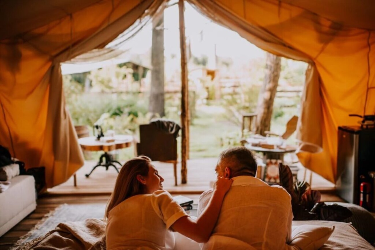 Nasze namioty, położone w sercu malowniczych terenów Kimura Glamping, to połączenie elegancji i funkcjonalności. Wybierając nasz obiekt, masz do dyspozycji namioty 2-osobowe, idealne dla par, oraz przestronne namioty 4-osobowe, które doskonale sprawdzą się dla rodzin lub grup przyjaciół. Każdy namiot jest w pełni wyposażony, oferując wygodne łóżka z wysokiej jakości pościelą, prywatną łazienkę z prysznicem, miejsce do siedzenia i relaksu oraz udogodnienia do parzenia kawy i herbaty. Dodatkowo, wszyscy goście mogą korzystać z bezpłatnego dostępu do Wi-Fi, co pozwala na pozostanie w kontakcie ze światem, nawet w tak odległym od codziennego zgiełku miejscu.